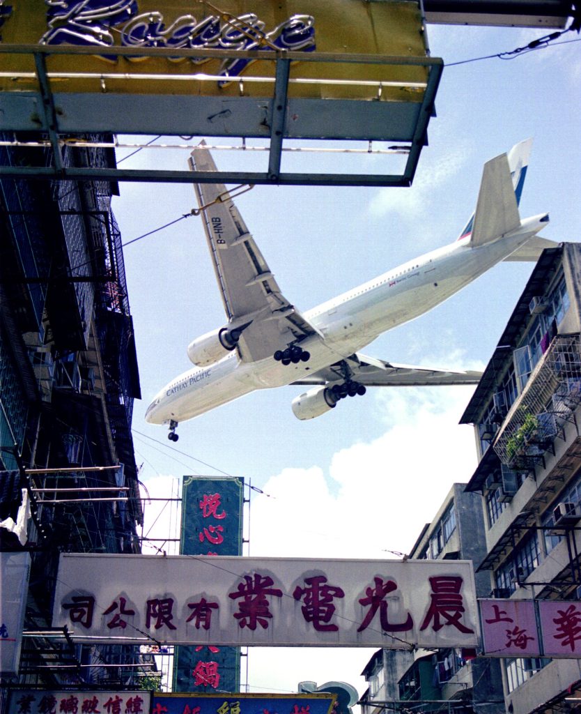 En las calles de Kowloon City siempre han cohabitado el ayer y el mañana. Desde 1925 hasta 1998 el barrio convivió con el Aeropuerto de Kai Tak. La relación entre la ciudad de Hong Kong, —y en concreto entre Kowloon City y, más en concreto, entre la ciudad amurallada— y el aeropuerto de Kai Tak ha generado muchos mitos y leyendas. Por ejemplo, hay historias que aseguran que durante el aterrizaje era posible ver con nitidez dentro de las casas de la gente, y hasta reconocer si la vecina del tercero estaba cenando sopa o el del quinto haciendo aeróbic. Aunque en los años 90 en la ciudad de Hong Kong ya había edificios de hasta 40 o 60 alturas, en los alrededores del aeropuerto de Kai Tak se intentaba respetar una altura compatible con el espacio aéreo. La ciudad amurallada, contaba con unas 14 o 15 plantas, y sus habitantes casi podían acariciar el lomo de los aeroplanos. Cuentan que los niños y niñas que vivían en la ciudad amurallalda de Kowloon sabían reconocer el modelo de avión que les estaba sobrevolando solo con escuchar el ruido: «Es un Boeing 747», imagino. Esas mismas infancias capturadas en las fotografías de Greg Girard e Ian Lambot, que jugaban, orgánicas, en su contexto de paisajes de azoteas irregulares y campos de antenas parabólicas desafiando al vértigo.